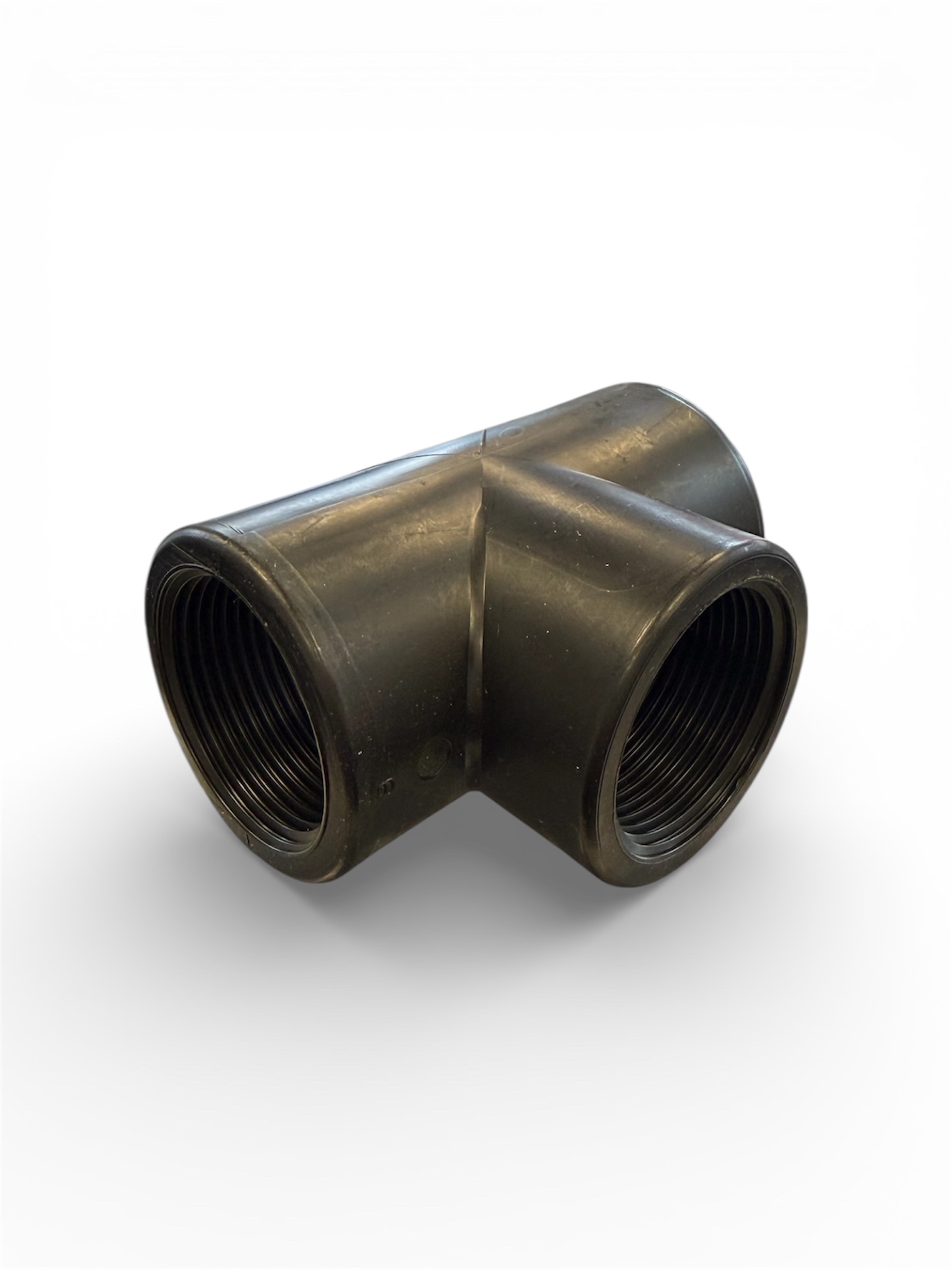 PP T-rör med invändig gänga för trycksatta vattensystem. 90°, PN16 och BSP-gänga i dimensioner från ½” till 3”.