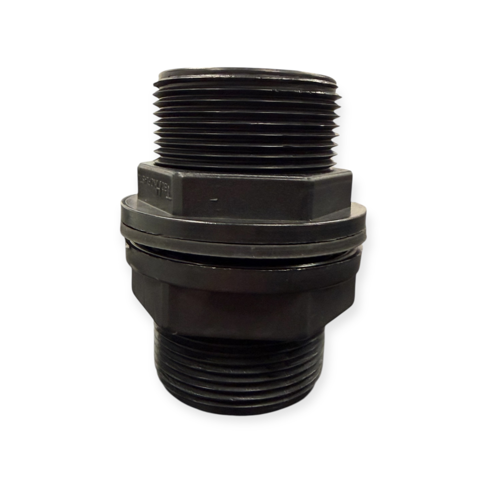 Tankgenomföring helgängad är avsedd för gängade anslutningar från 1/2″ till 2″. Den används i hydrauliska system för distribution av trycksatta vätskor, främst i bevattnings- och vattenförsörjningssystem.
